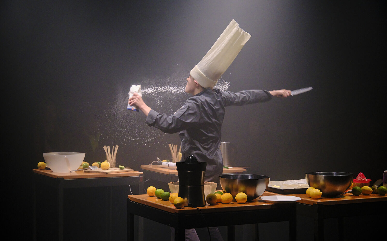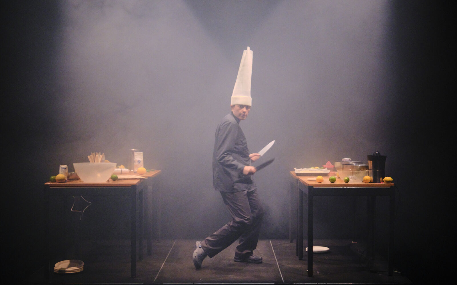 Die Chefköchin Alice Héron und die Choreografin Clara Delorme begegnen sich 2025 in Rom und entwickeln gemeinsam eine energiegeladene kulinarische Show. Auf der Bühne hackt, streut und serviert Clara als Chefköchin kleine Häppchen und verbindet ihre Bewegungen mit einer elektrisierenden Performance. Was zunächst wie ein einfacher Kochakt beginnt, wird nach und nach zu einem humorvollen und leicht chaotischen Ritual, das das Publikum einlädt, zu riechen und sich die Geschmackswelten vorzustellen. Das Stück feiert die Wärme des Zusammenkommens, die Freude am Anrichten und den einfachen, aber kostbaren Akt, eine Mahlzeit zu teilen.