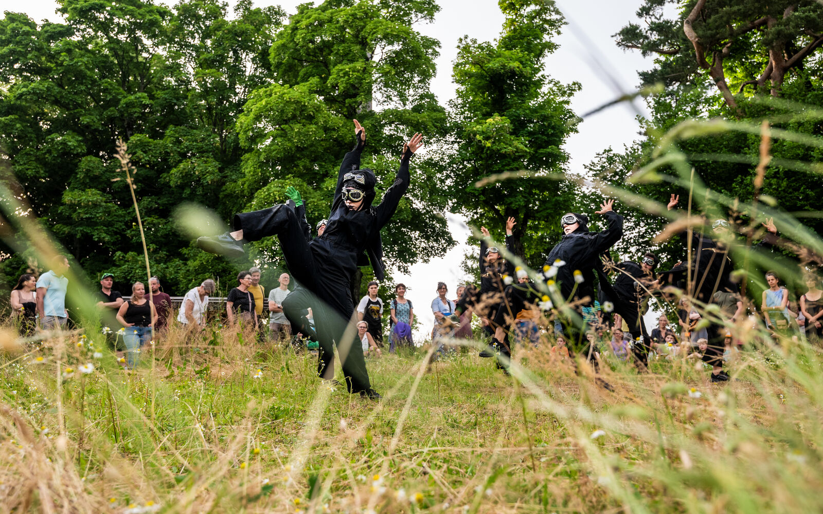 Insekten sind überall und doch bleibt ihr Mikrokosmos oft unsichtbar. Mit «INSEKTEN oder der Tanz zwischen Himmel & Erde» rückt die Tanz- und Luftartistik-Compagnie öff öff diese kleinen, bedrohten Geschöpfe in den Fokus. Wie Schmetterlinge, Gottesanbeterinnen oder Käfer bewegen sich die Artist·innen federleicht und skurril in luftigen Höhen über Bäume. Für einen flüchtigen Moment scheinen sie die Schwerkraft zu überwinden. Dieses virtuose Tanzspektakel regt dazu an, über unsere Verantwortung für die Natur und ihre fragile Balance nachzudenken.