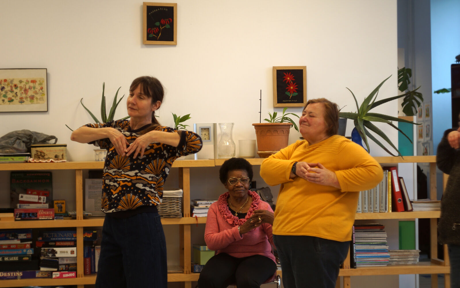 In diesem Workshop mit Sarah Ludi und Samantha van Wissen sind alle willkommen, die Freude an Tanz und Bewegung haben. Die Bewegungs-Einheiten laden dazu ein, loszulassen, zu entspannen und körperliche Spannungen sanft zu lösen – unabhängig von Vorkenntnissen oder körperlichen Voraussetzungen. Menschen im höheren Alter, die in ihrer Beweglichkeit eingeschränkt sind oder einen Verlust an Autonomie erleben, können hier Musik, Rhythmus und Bewegung wieder bewusst erleben. Ein Wiegen, eine Berührung, das einfache Bedürfnis, sich zur Musik zu bewegen: Im Mittelpunkt stehen die Neugier und die Lust an der Bewegung.